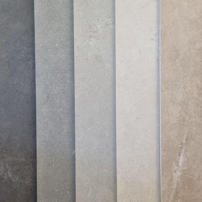 Die Vorauswahl der Architekten sind Wand- und Bodenplatten im Format 120 x 60 cm von der Plattenserie «Pietre di Sardegna». Diese Platte weist eine feine Struktur auf, die in 7 verschiedenen Farben erhältlich ist. Vorgesehen ist, dass der Boden und die Wände in den Nassräumen raumhoch mit Wandplatten belegt werden.